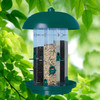 - Three see-through chambers holds regular, sunflower or thistle seed. It has nine feeding stations for regular and sunflower seed. Three feeding stations for thistle seed are also included