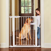 The Tall Happy Tails Walk Thru Pet Gate from North States will have tails wagging in your home. This safety gate easily pressure mounts between rooms, hallways or doorways. At 36” high, this tall hard-to-climb barrier will keep most breeds safely contained while teaching them boundaries throughout the house. The extra-wide 22″ door provides plenty of room to walk through with ease and gravity-fed hinge effortlessly closes it behind you. The white finish of this pet gate will blend seamlessly with any home decor, while its heavy-duty steel construction is chew-proof and built to last! This gate fits openings 29.75 to 37.5 inches wide with two extensions included.
