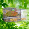 The Large Clear Choice Window Feeder lets you get up close with your feathered friends from inside your home. Made of clear plastic, you can see right through as birds of all kinds come to feed. Young and old alike will love being able to see the birds feeding in plain sight. It features a horizontal level indicator to make leveling your feeder a breeze. Simply attach one of the suction cups to your window and adjust the level using the easy to read indicator. It’s convenient, practical and fun. Once level, attach the other suction cup and fill with seed. The middle compartment can be filled with water or slices of fruit. The slide-out seed tray allows for easy filling and includes drain holes to prevent water from pooling. Measuring 5.5 x 16.25 x 7 inches high and holds 1 lb. of your favorite wild bird or sunflower seed.