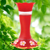 The Nature's Yard Wildflower Glass Hummingbird Feeder by North States will have those hungry hummers jumping for joy. This feeder has 7 pink flower ports with yellow accents and perches and holds up to 20 oz. of nectar. The clear glass reservoir has a wide mouth opening so it's easy to fill and clean. To keep those pesky ants away, the built-in ant moat is sure to do the trick.