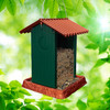 The Green Hopper Style birdfeeder is part of the ever-expanding Village Collection of feeders. This hanging hopper birdfeeder is crafted out of lightweight plastic for strength and durability. Measuring 8.25 x 8.25 x 11 inches high, this feeder holds 4.25 lbs. of seed. For monitoring seed levels, the center chamber has two clear window panes. To fill the feeder, simply lift up the roof. This birdfeeder displays a crescent moon on the raised wood-like green side panels to add a touch of country charm to your backyard.