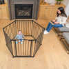 - Versatile: Six-panel enclosure can act as a portable play yard, a gate or a barrier