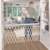 Protecting your kids is #1, and the Toddleroo by North States® Expandable Swing Wood Gate is the perfect gate for those extra-wide openings in your home. The sturdy wood construction of this gate features four-point steel hardware for mounting and a safety latch with easy one-hand operation. There is also a top safety rail on this gate which adjusts automatically when the gate expands. This swing gate mounts easily in a variety of room openings or at the bottom of stairs measuring 24 to 60 inches wide and is 32 inches high. When not in use, simply remove the gate from the hinge and tuck it out of the way. You'll love how it doesn't get in the way while visitors are over. Every Toddleroo by North States baby gate is Baby Safety Alliance and ASTM certified. Proudly made in the USA.