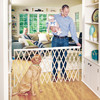 The Expandable Swing Wood Petgate is the perfect gate for those extra-wide openings in your home. The sturdy wood construction of this gate features four-point steel hardware for mounting and a safety latch with easy one-hand operation. There is also a top safety rail on this gate which adjusts automatically when the gate expands. This swing gate mounts easily in a variety of room openings or at the bottom of stairs measuring 24 to 60 inches wide and is 32 inches high. When not in use, simply remove the gate from the hinge and tuck it out of the way. Safety and containment all wrapped up in one gate - how simple. Proudly Made in the USA.